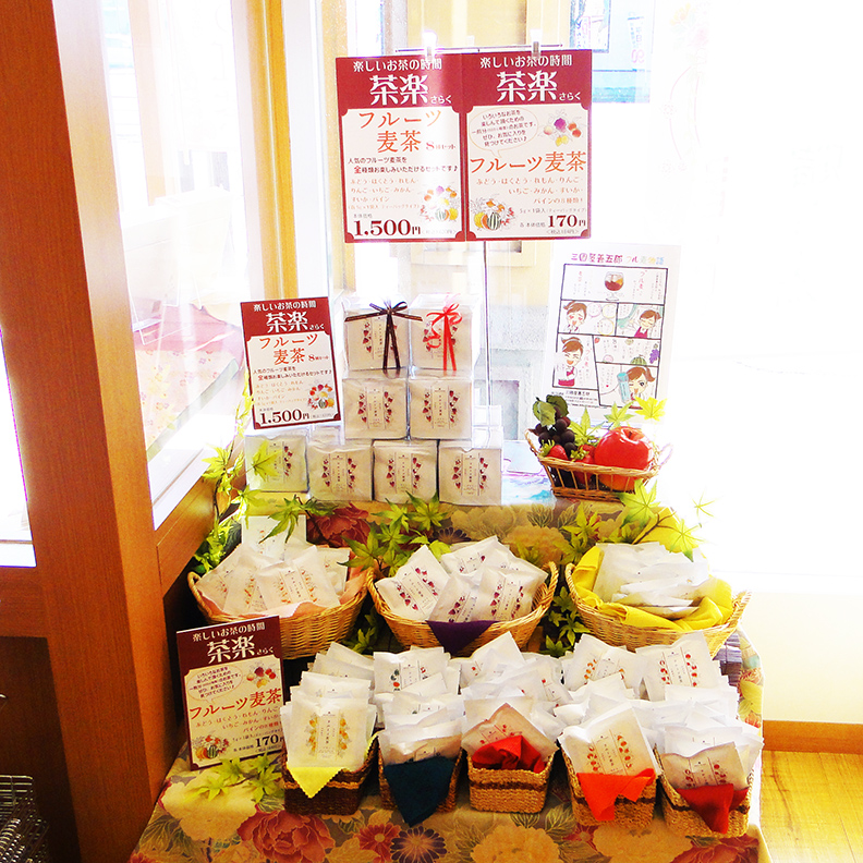 ニュース 2019.05.15 人気商品「フルーツ麦茶」 GWも過ぎて、どんどん暖かくなってきましたね。 今年も人気商品「フルーツ麦茶」発売中です。 「ぶどう」「はくとう」「れもん」「いちご」 「みかん」「パイン」「りんご」「すいか」 全8種ございます。 皆様のお好きな味はどれでしょうか?
