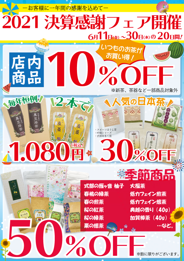 毎年楽しみにしている季節商品や、いつものお茶をお得にお買い求めいただけるチャンスです♪