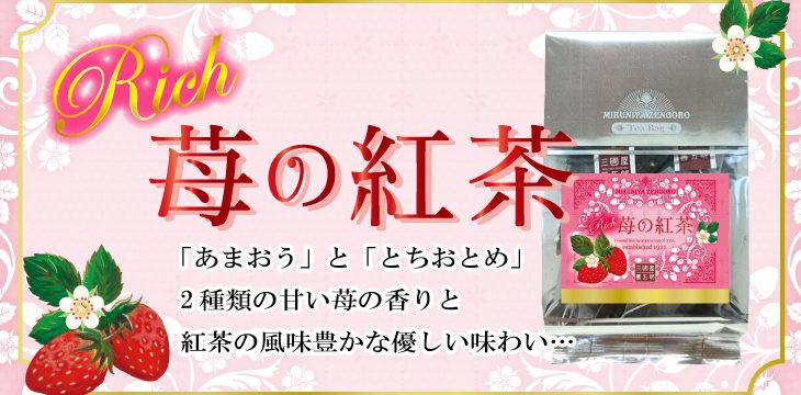 「Rich苺の紅茶」3月15日(月)発売   苺の代表品種「とちおとめ」と「あまおう」を イメージした香りの茶葉をブレンドした 贅沢な香りの紅茶です。   甘い苺の香…