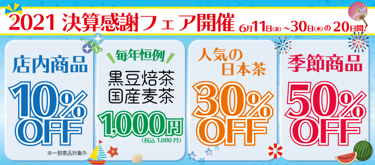 一年の感謝を込めて… 今年も20日間限定で、 とってもお得な決算感謝フェアを開催! 開催日 6月11日(金)~ 6月30日(水)   店内商品10%OFFに加え、 毎年恒例の黒…